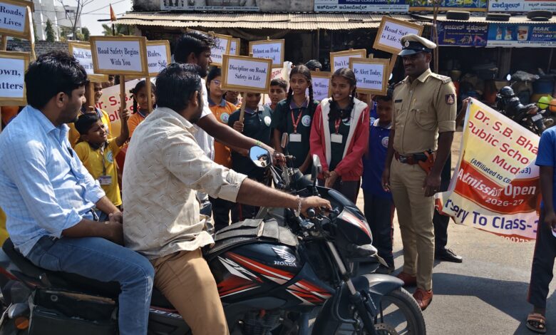ಹೆಲ್ಮೆಟ್ ಧರಿಸಿ, ಸಣ್ಣ ಮಕ್ಕಳಿಗೆ ಬೈಕ್ಗಳನ್ನು ಕೊಡಬೇಡಿ, ಲೈಸೆನ್ಸ್ ಹಾಗೂ ಇನ್ಸೂರೆನ್ಸ್ ಇರಲಿ ಎಂದು ಜಾಗೃತಿ ಮೂಡಿಸಿದರು. ಈ ಸಂದರ್ಭದಲ್ಲಿ ಸ್ಥಳಿಯ ಠಾಣೆಯ ಪಿಎಸ್ಐ ವೆಂಕಟೇಶ್ ಮಾಡಗೇರಿ, ಸರ್ಕಾರಿ ಆಸ್ಪತ್ರೆಯ ವೈದ್ಯರಾದ ವಿನೋದ್ ಕುಮಾರ್, ಶಾಲೆಯ ಅಧ್ಯಕ್ಷ ಡಾ.ಎಸ್ ಬಿ ಭಮಸಾಗರ ಸೇರಿದಂತೆ ಶಾಲೆ ಶಿಕ್ಷಕರು ಮಕ್ಕಳು ಇದ್ದರು.